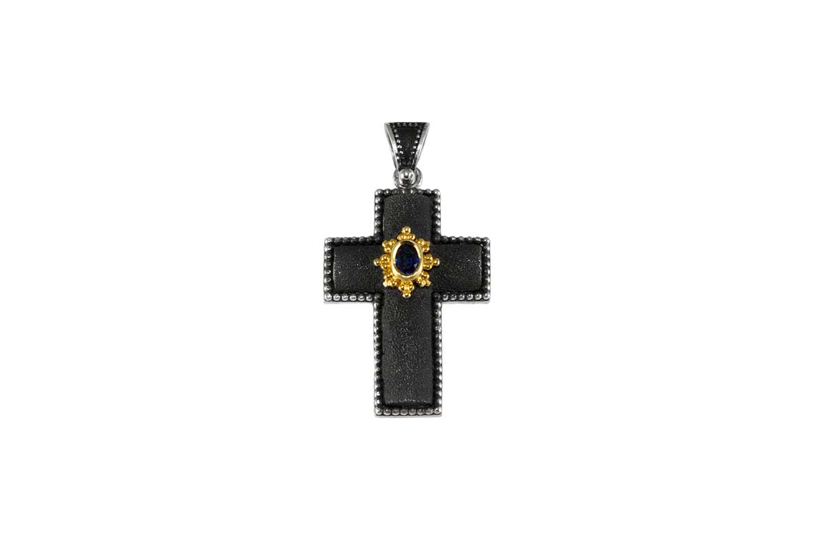 Ασημένιος χειροποίητος Σταυρός με ζαφείρι
