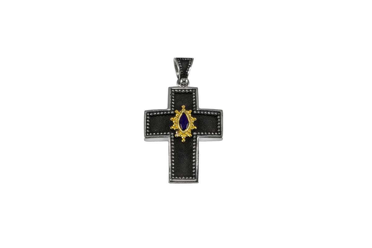 Ασημένιος χειροποίητος Σταυρός με Ζαφείρι
