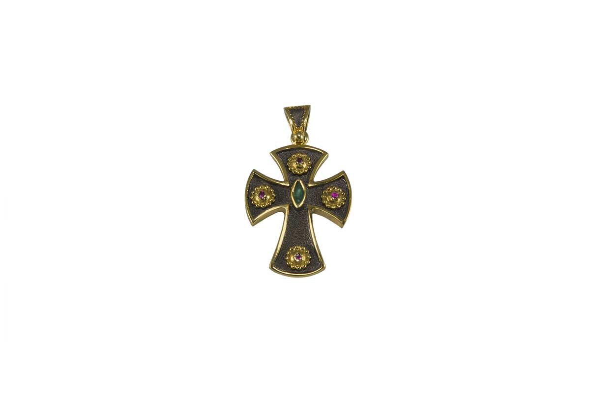 Home / Byzantine jewelry / Christian Cross Jewelry / Handmade cross with emerald and rubies
