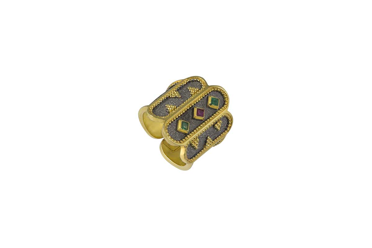 Home / Byzantine jewelry / Ring / Handmade ring with emeralds and ruby