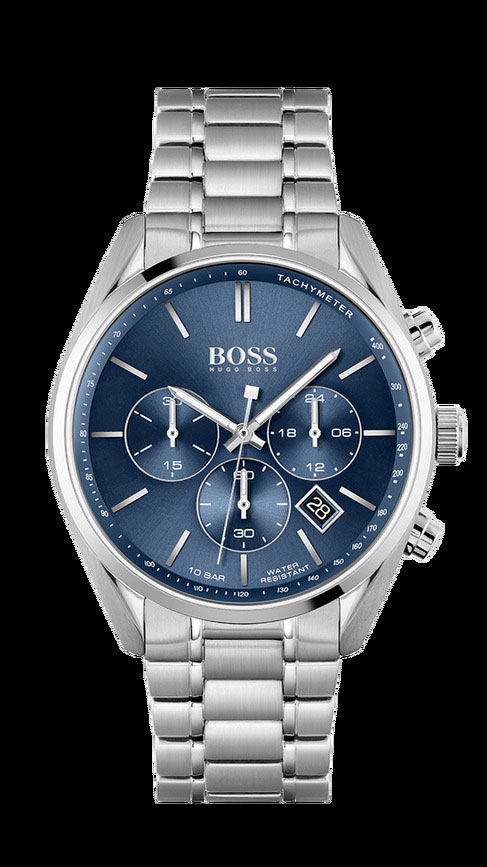 Men’s watch Hugo Boss made of stainless steel with blue dial and silver bracelet.