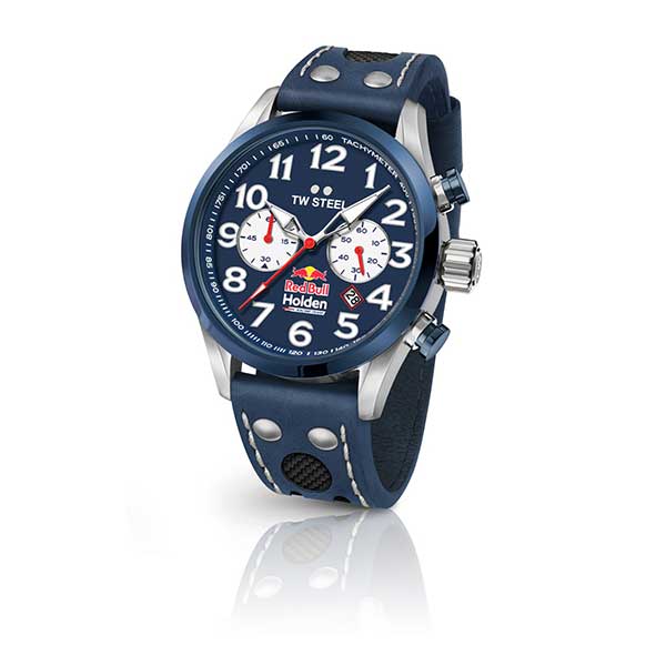 TW Steel men’s watch from the collection The Red Bull Holden Racing Team Special Edition, with blue dial, silver stainless steel case and blue leather strap
