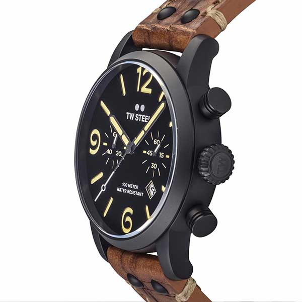 Men’s watch by TW Steel from the Maverick collection, with dial, black stainless steel case and brown leather strap