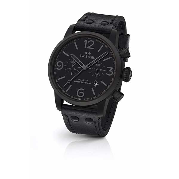 Men’s watch by TW Steel from the Maverick collection, with black dial, black stainless steel case and black leather strap