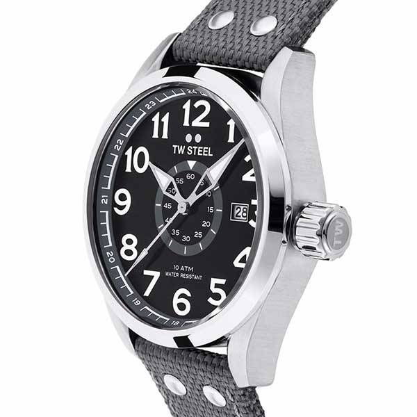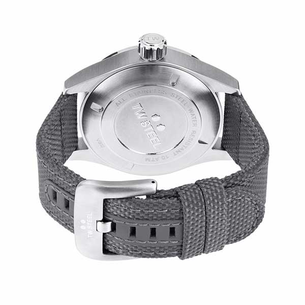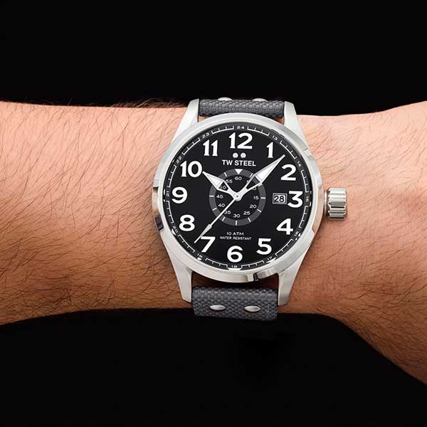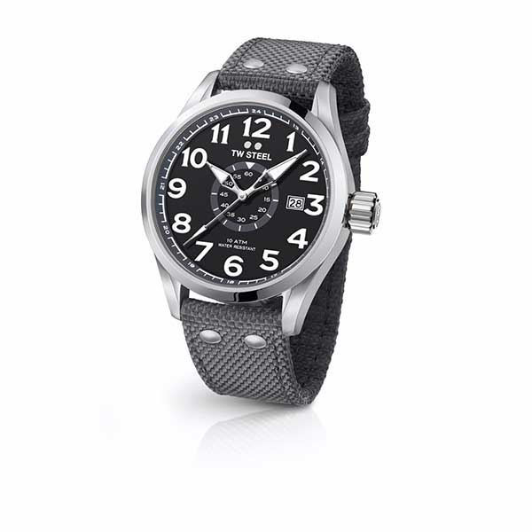Men’s watch by TW Steel from the Volante collection, with dial, silver stainless steel case and gray textile strap
