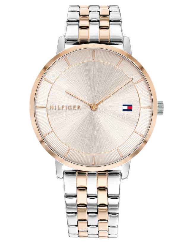 Women’s watch Tommy Hilfiger made of stainless steel with beige dial and silver-pink gold bracelet.